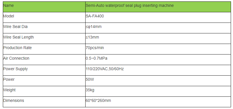 seal at high speed. Just need replace the corresponding rails for different sizes waterproof plugs,It is specially designed for automobile wire processing industry with strict requirements.
